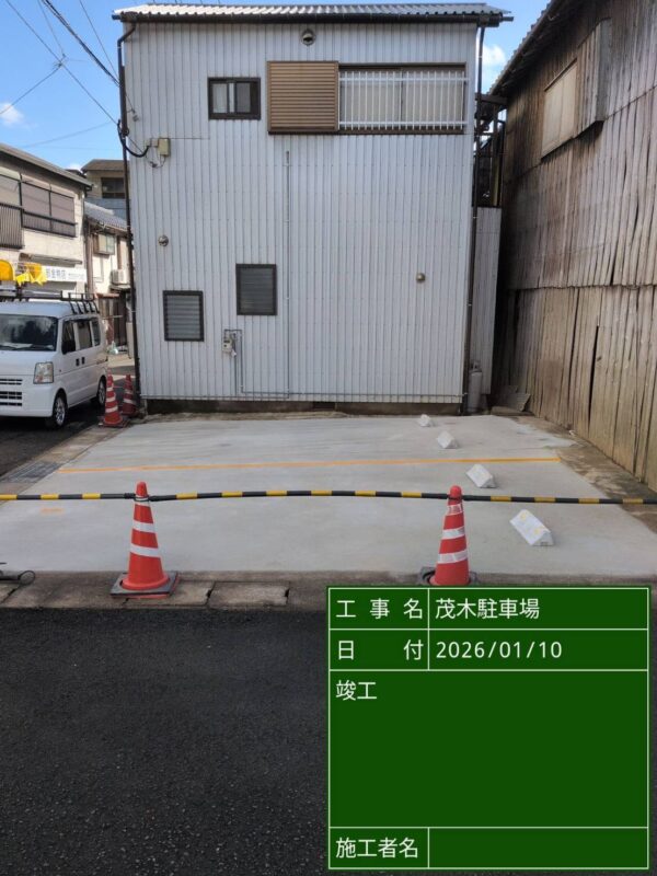建物解体後は駐車場にされたいとの事でしたので、コンクリート舗装を行い完工しました。